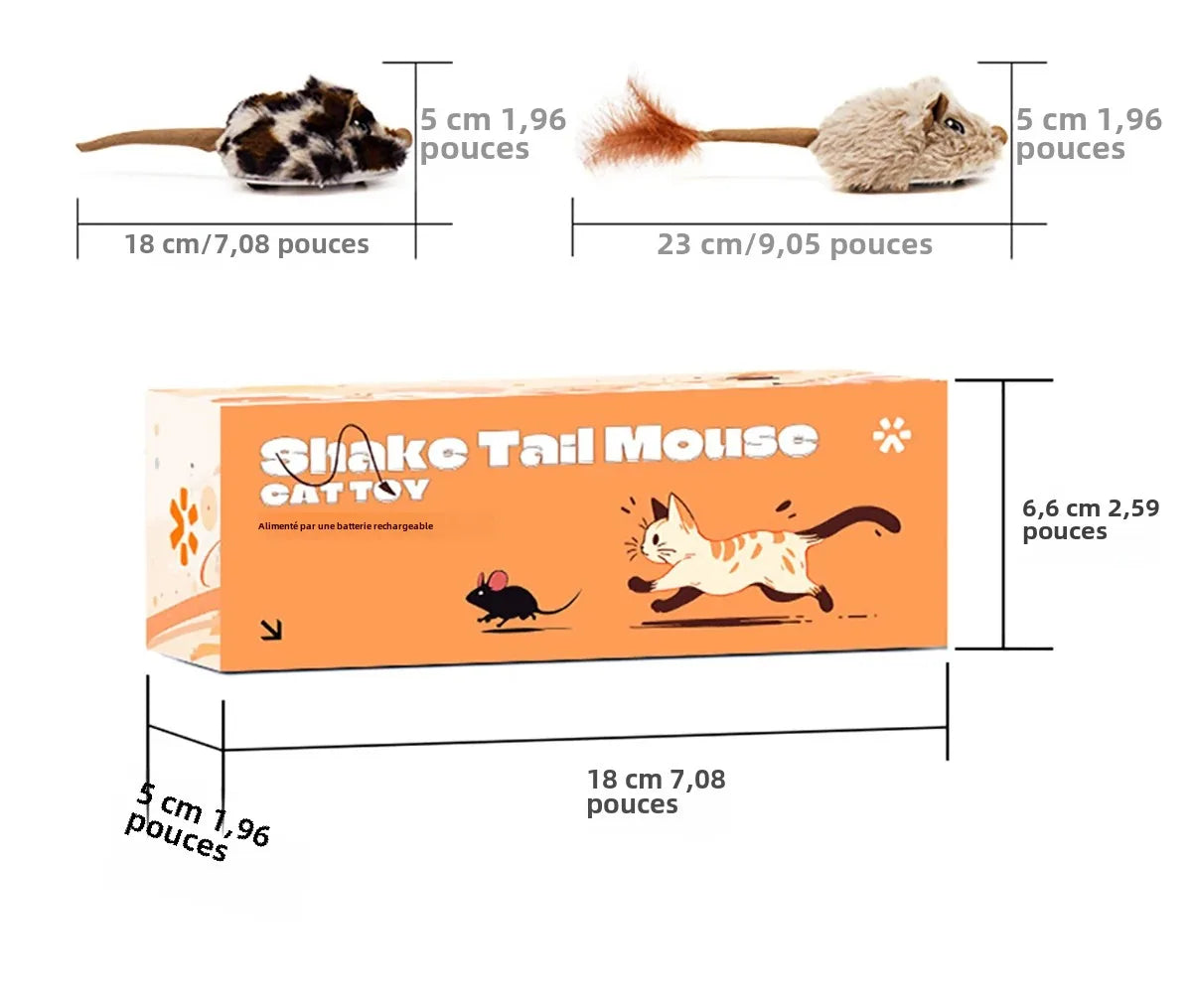 La conception innovante à double pneu ne nécessite aucune pile. Il vous suffit de tirer sur le ressort et de placer la souris sur le sol pour la voir s'échapper, imitant le mouvement d'une vraie souris. Ce jouet interactif est parfait pour stimuler l'instinct de chasseur de votre chat, tout en lui offrant un excellent moyen de se dépenser.